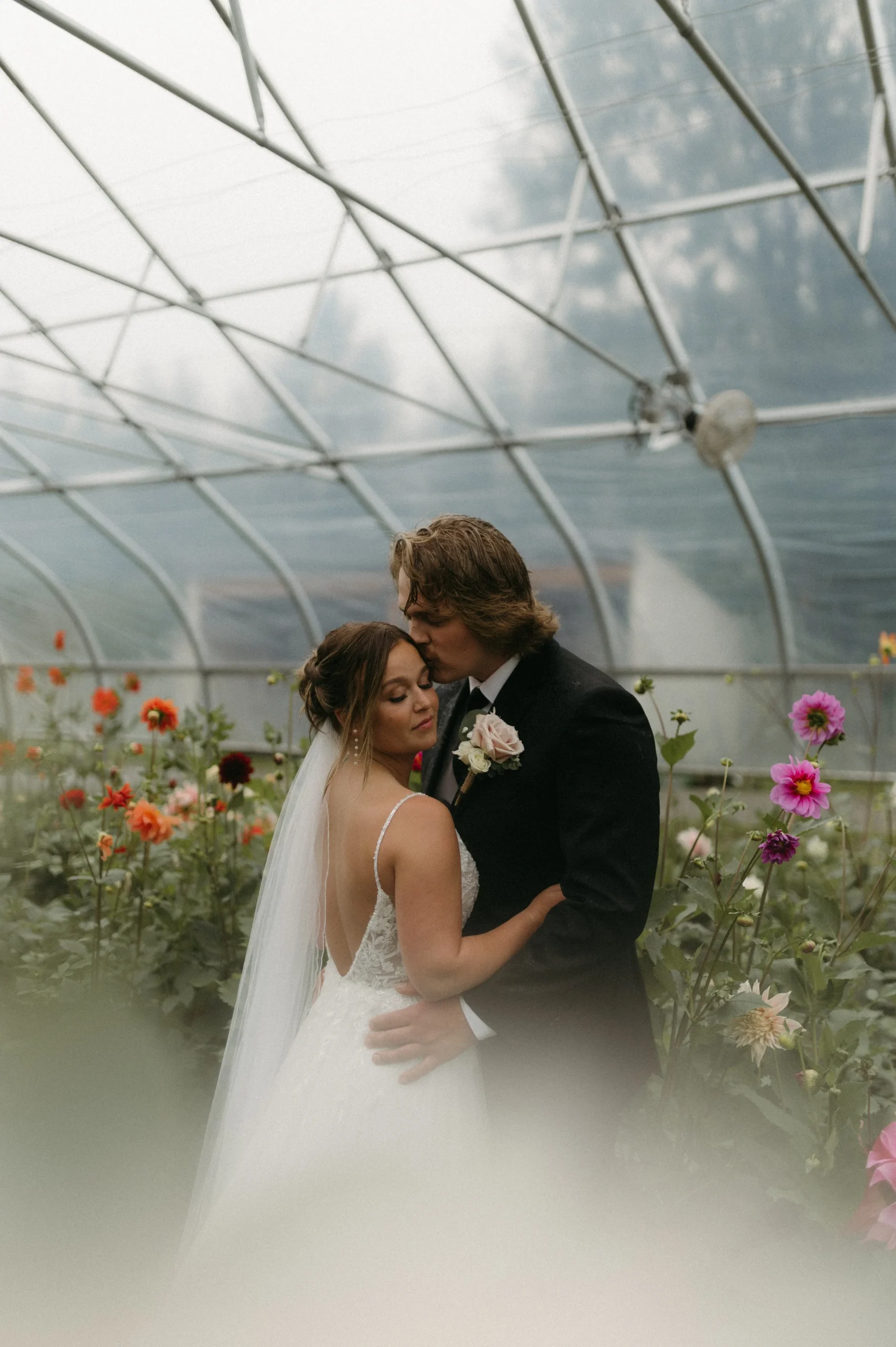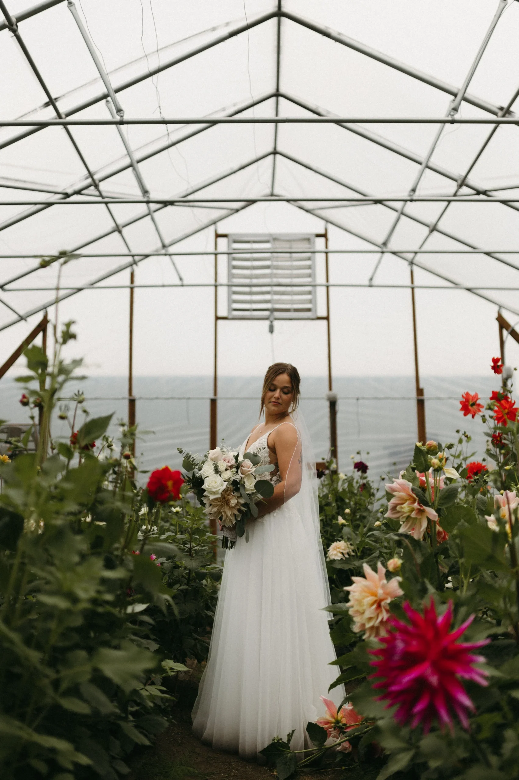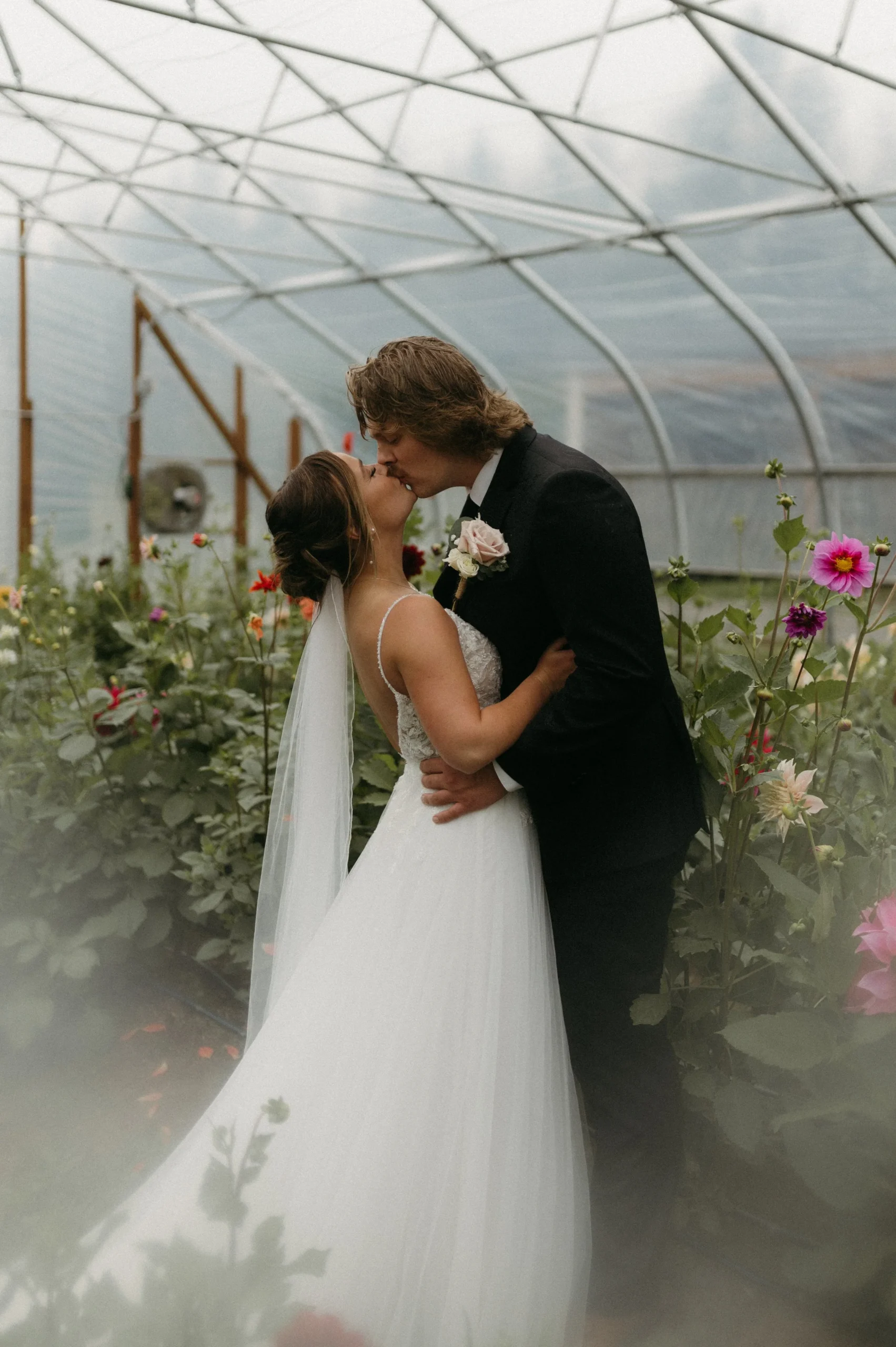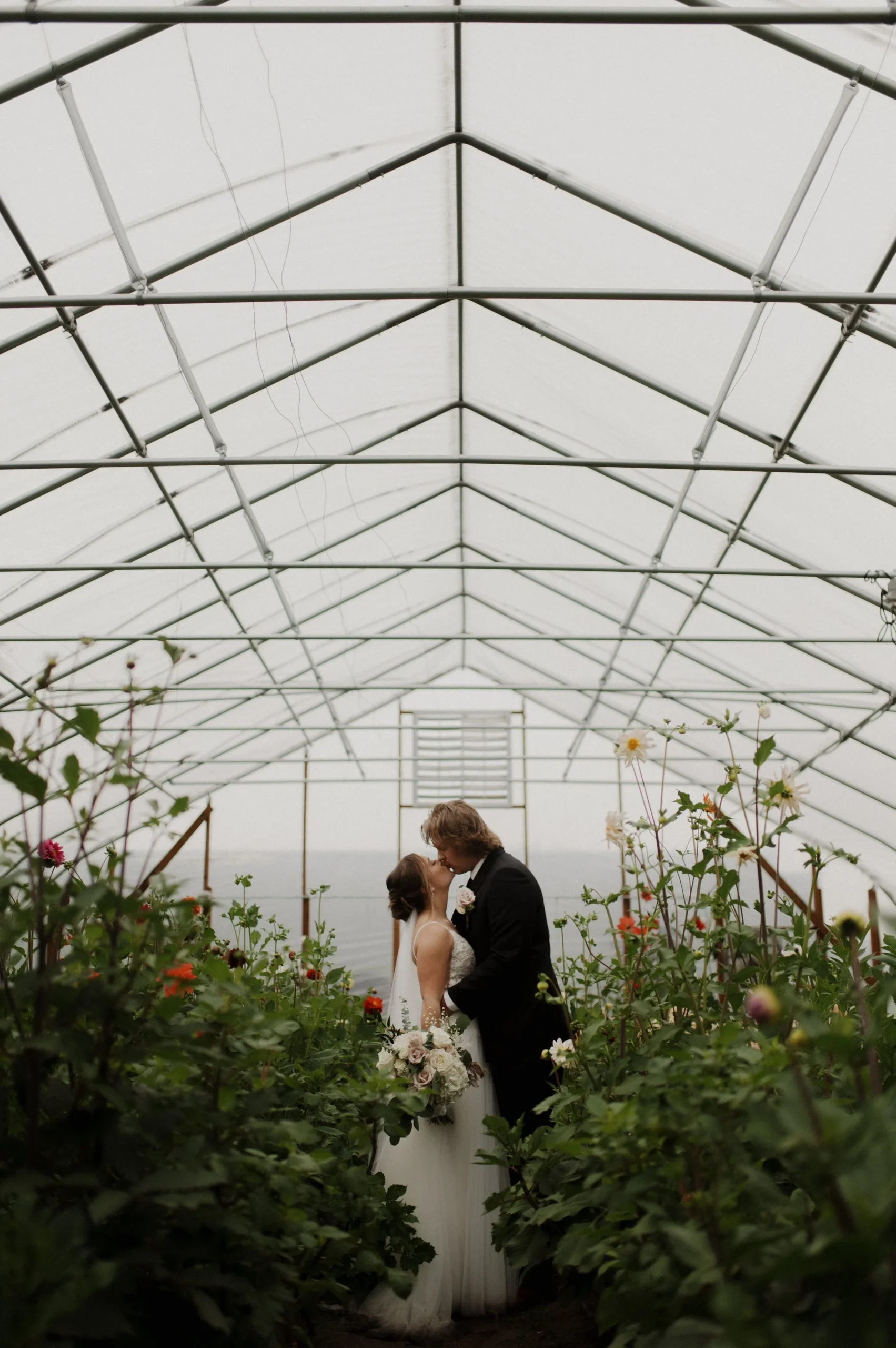 Man oh man, Delaney and Pasha’s rainy wedding day in Palmer, Alaska was WILD! The weather was absolutely stormy, making the entire day an unpredictable adventure. I have never seen such awful weather in my life! Despite the chaos, Delaney and Pasha were able to have a fun and dreamy wedding at Mountain Field Farm. This venue had a renovated colonial homesteading barn with a gorgeous interior, greenhouses with colorful flowers, and beautiful green fields. Overall, Delaney and Pasha were such troopers through it all. They focused solely on the love they share and the memories of becoming one.