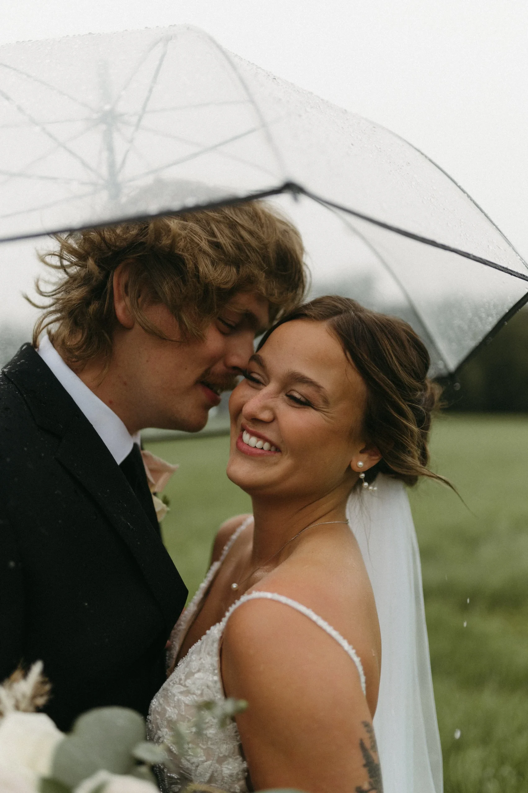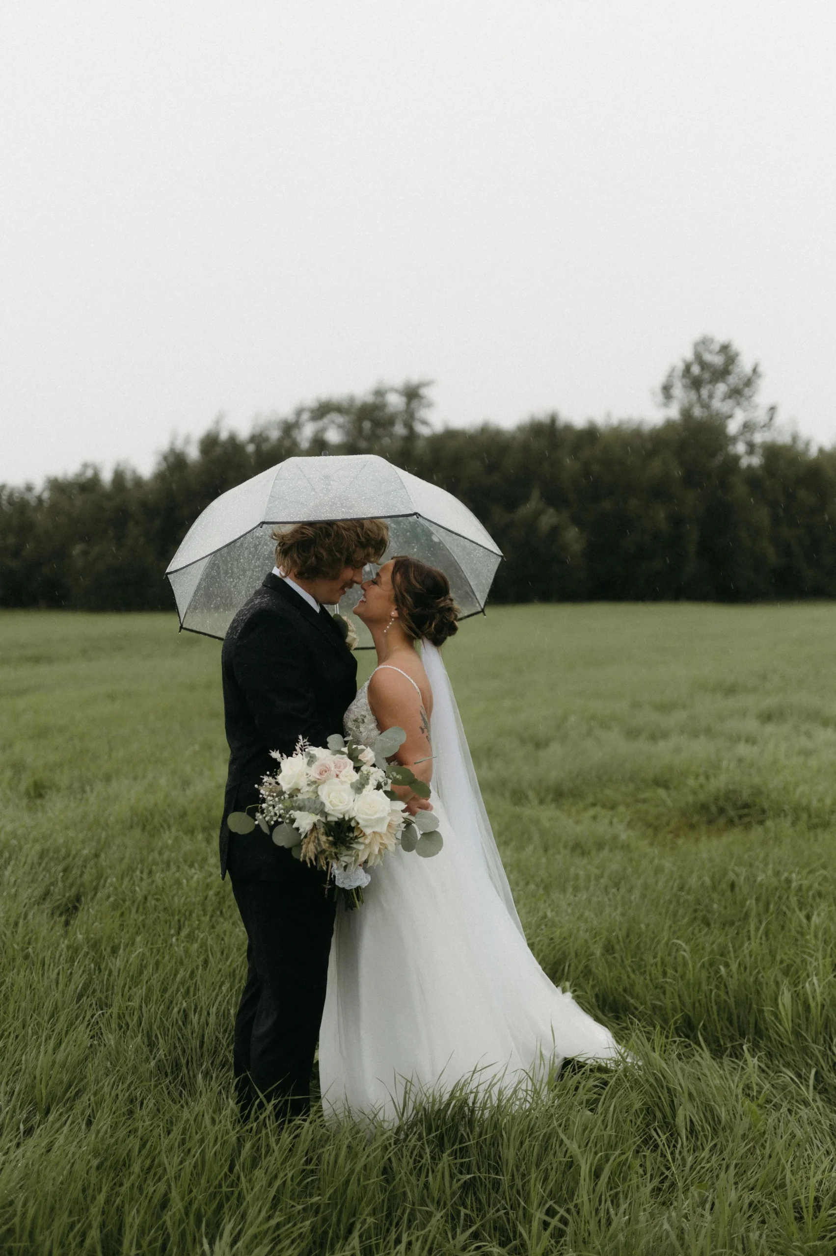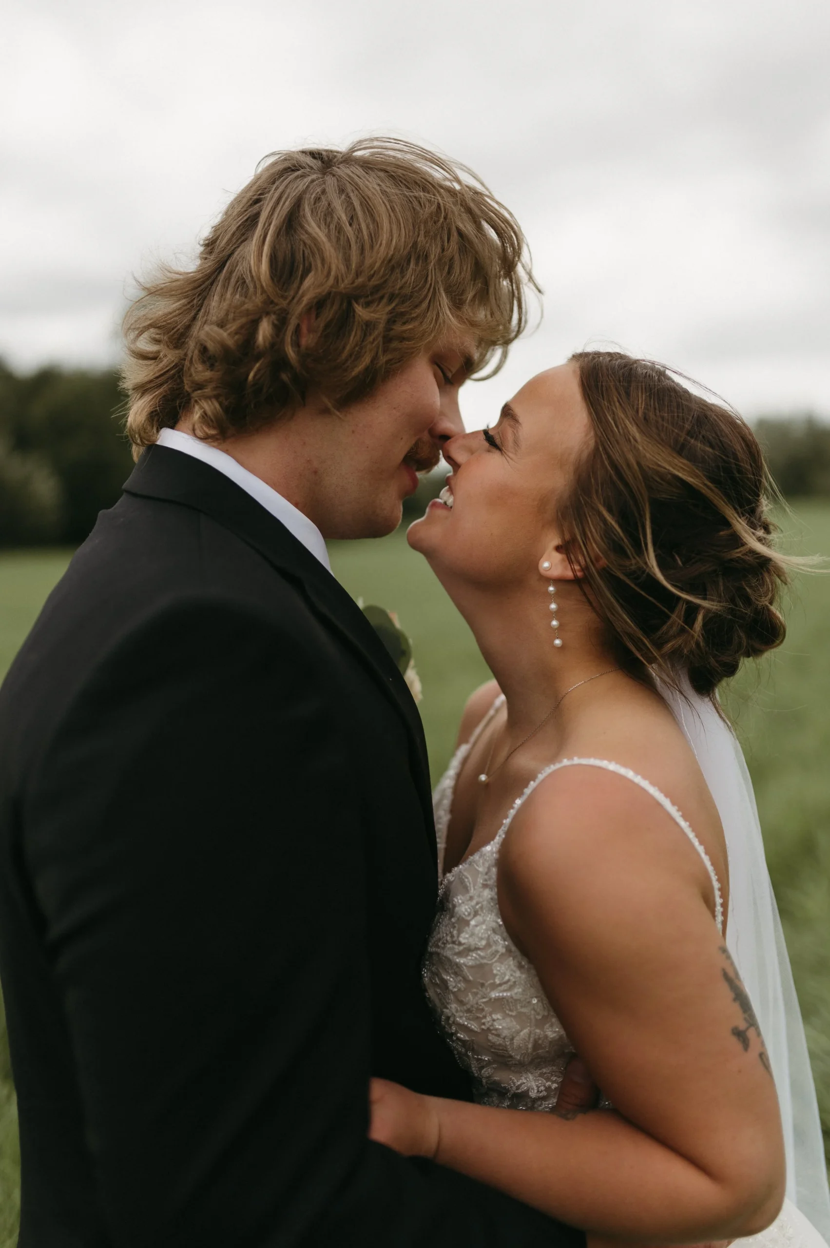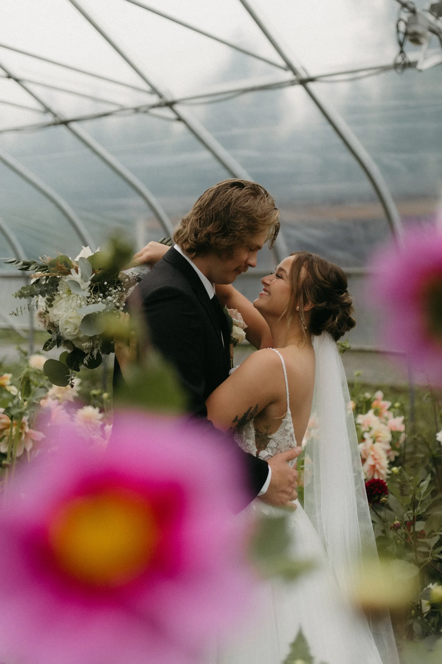 Man oh man, Delaney and Pasha’s rainy wedding day in Palmer, Alaska was WILD! The weather was absolutely stormy, making the entire day an unpredictable adventure. I have never seen such awful weather in my life! Despite the chaos, Delaney and Pasha were able to have a fun and dreamy wedding at Mountain Field Farm. This venue had a renovated colonial homesteading barn with a gorgeous interior, greenhouses with colorful flowers, and beautiful green fields. Overall, Delaney and Pasha were such troopers through it all. They focused solely on the love they share and the memories of becoming one.
