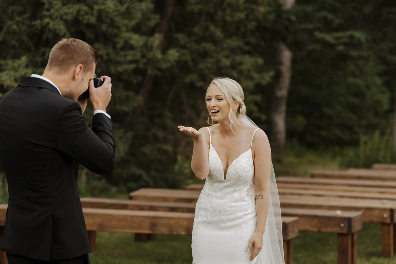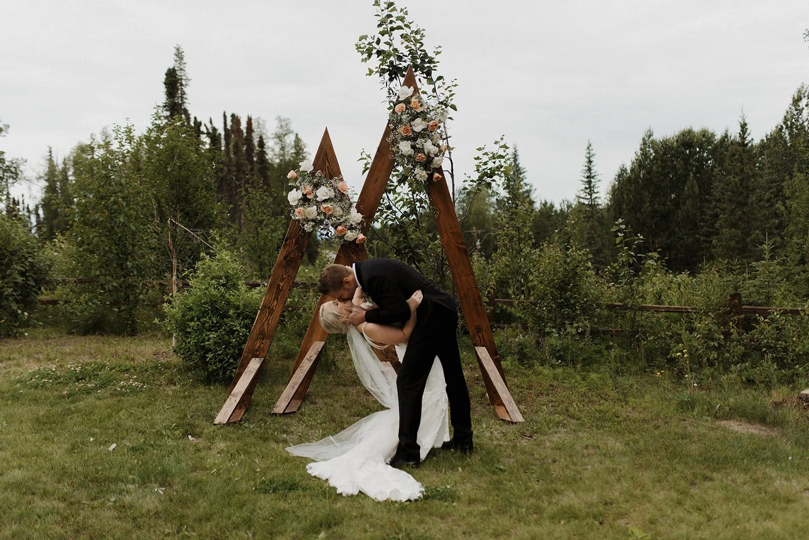 Kelsey and Austin’s wedding in Alaska Soldotna was the definition of elegance and intentionality, but it was also packed with personality and playfulness! These two lovebirds are just the sweetest, and it was a joy to watch them celebrate their love! I got a total kick out of when I handed them my camera and they snapped some seriously gorgeous photos of each other from their unique perspectives! And don’t even get me started on their drink stir sticks they had with their pup’s face on them – talk about adorable! Every detail of Kelsey and Austin’s special day was carefully thought out, and it made for an unforgettable and beautiful celebration of love!