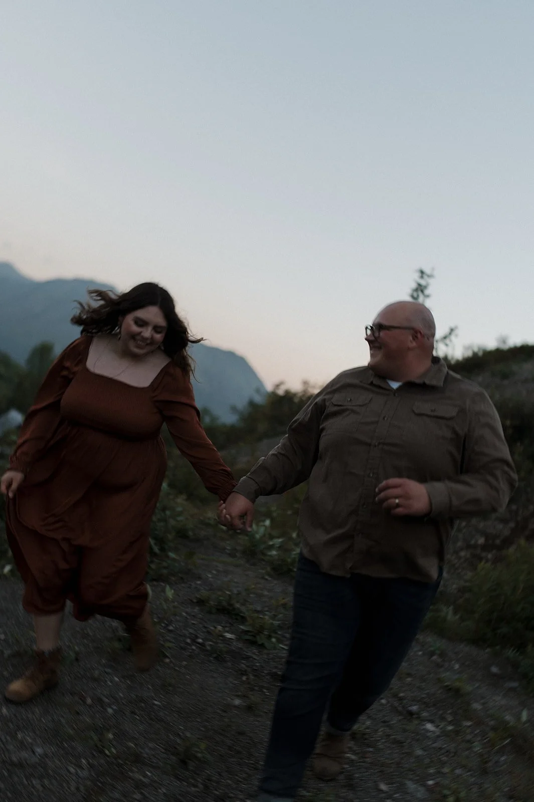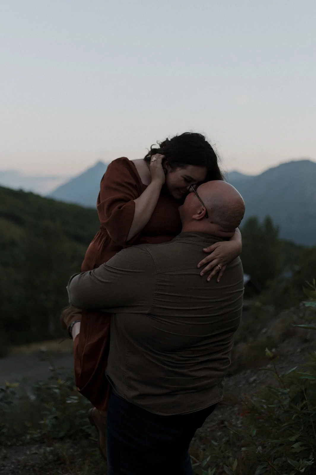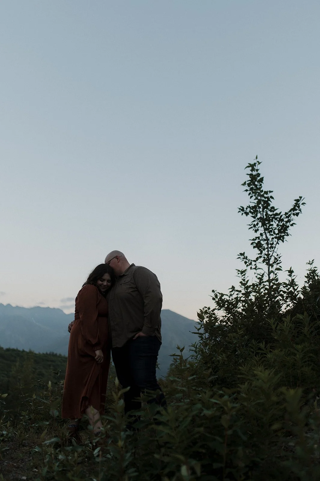 Last summer, I captured a beautiful couples photoshoot in Alaska for Madelynn and Stephen’s wedding anniversary. As the sun was setting behind the mountains in the distance, I was able to document the love they have for each other while they were living in the moment. I have actually had the privilege of photographing Madelynn and Stephen from the get go! I was there for their proposal and wedding, and every year around their anniversary I’m invited back! Overall, their sessions are always so special to me. I try my best to capture the emotions surrounding their life at the time.
