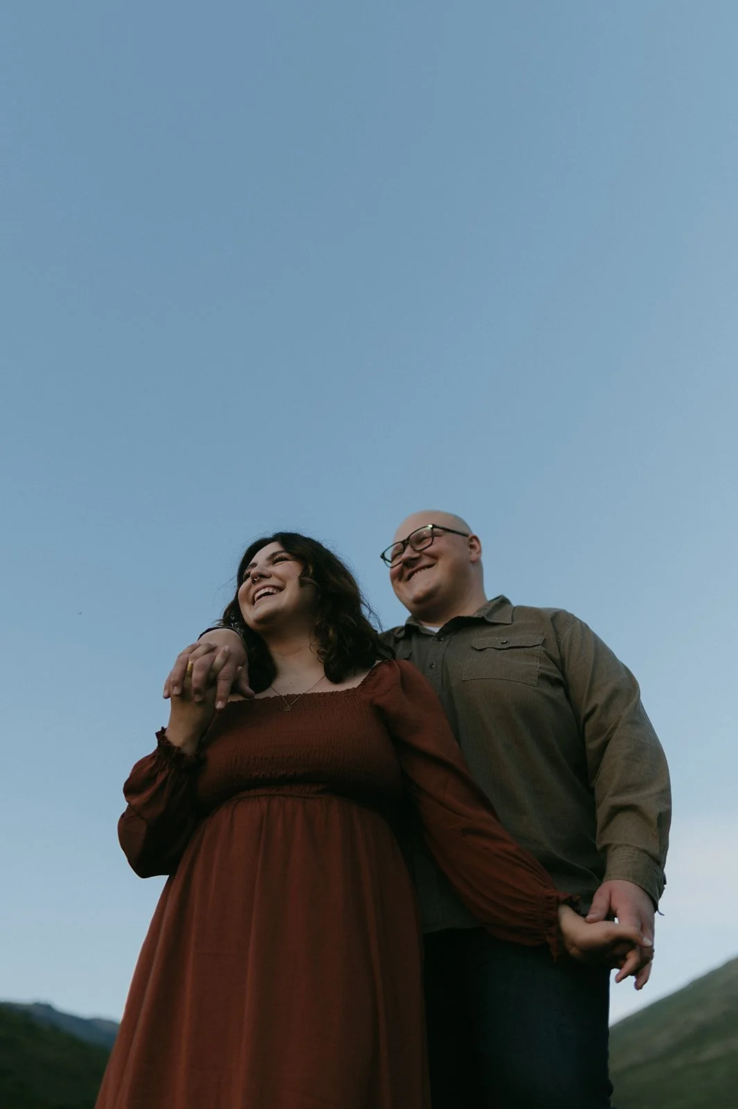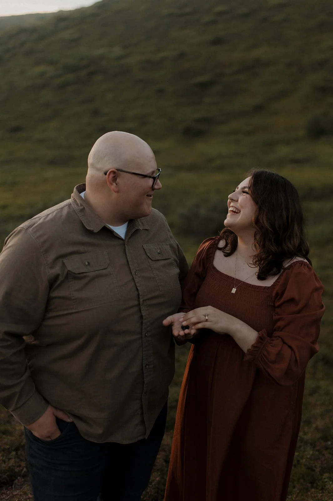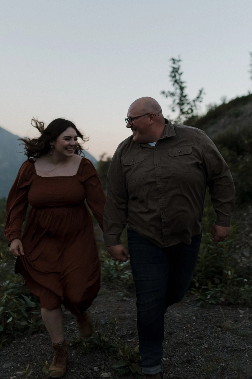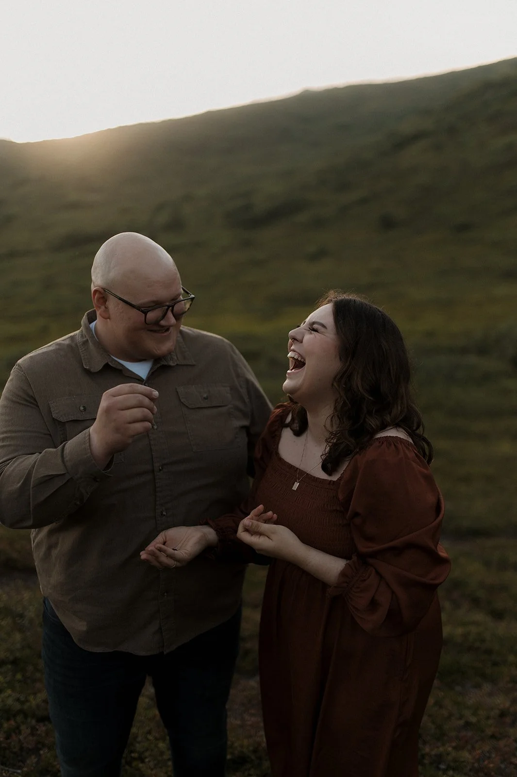 Last summer, I captured a beautiful couples photoshoot in Alaska for Madelynn and Stephen’s wedding anniversary. As the sun was setting behind the mountains in the distance, I was able to document the love they have for each other while they were living in the moment. I have actually had the privilege of photographing Madelynn and Stephen from the get go! I was there for their proposal and wedding, and every year around their anniversary I’m invited back! Overall, their sessions are always so special to me. I try my best to capture the emotions surrounding their life at the time.