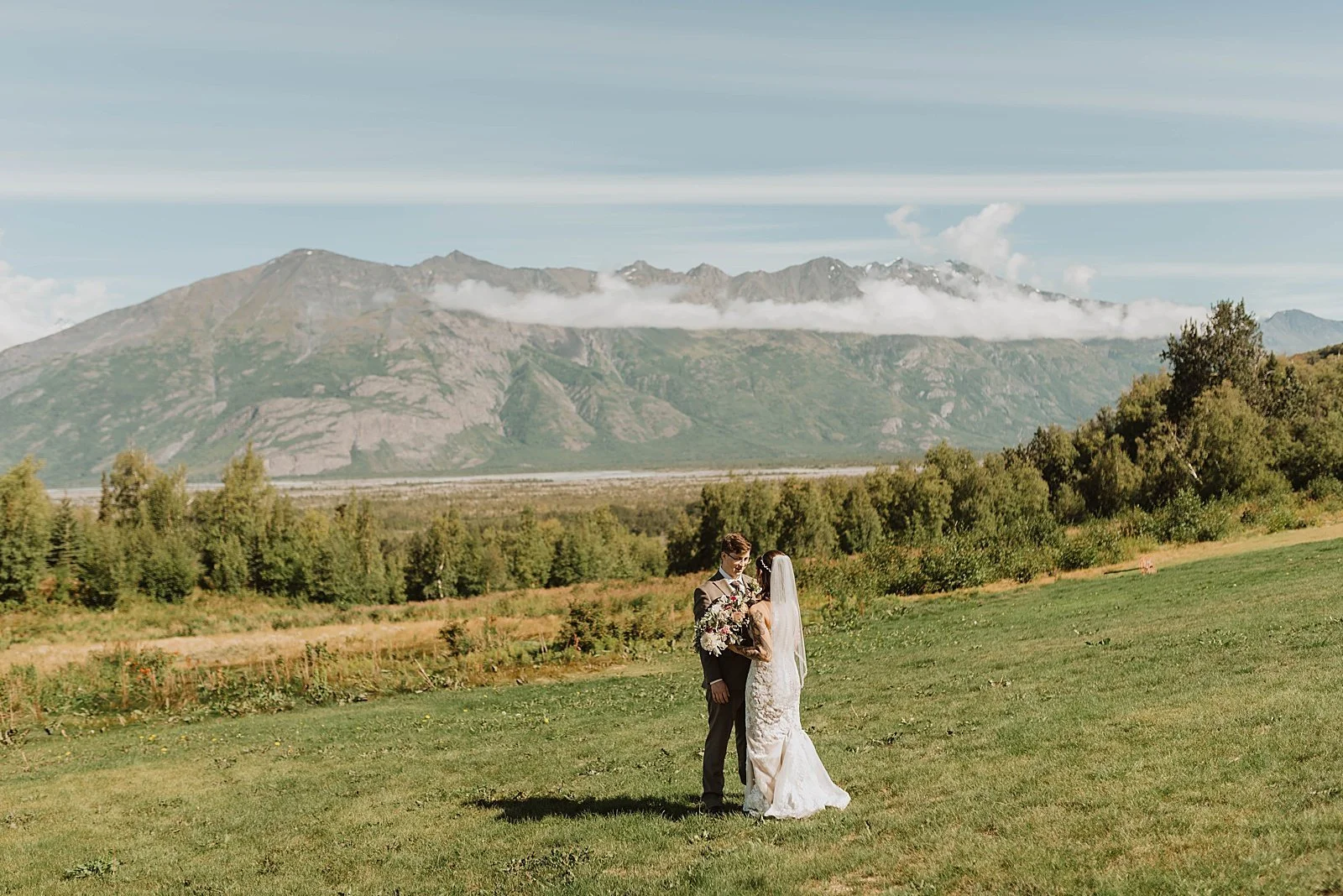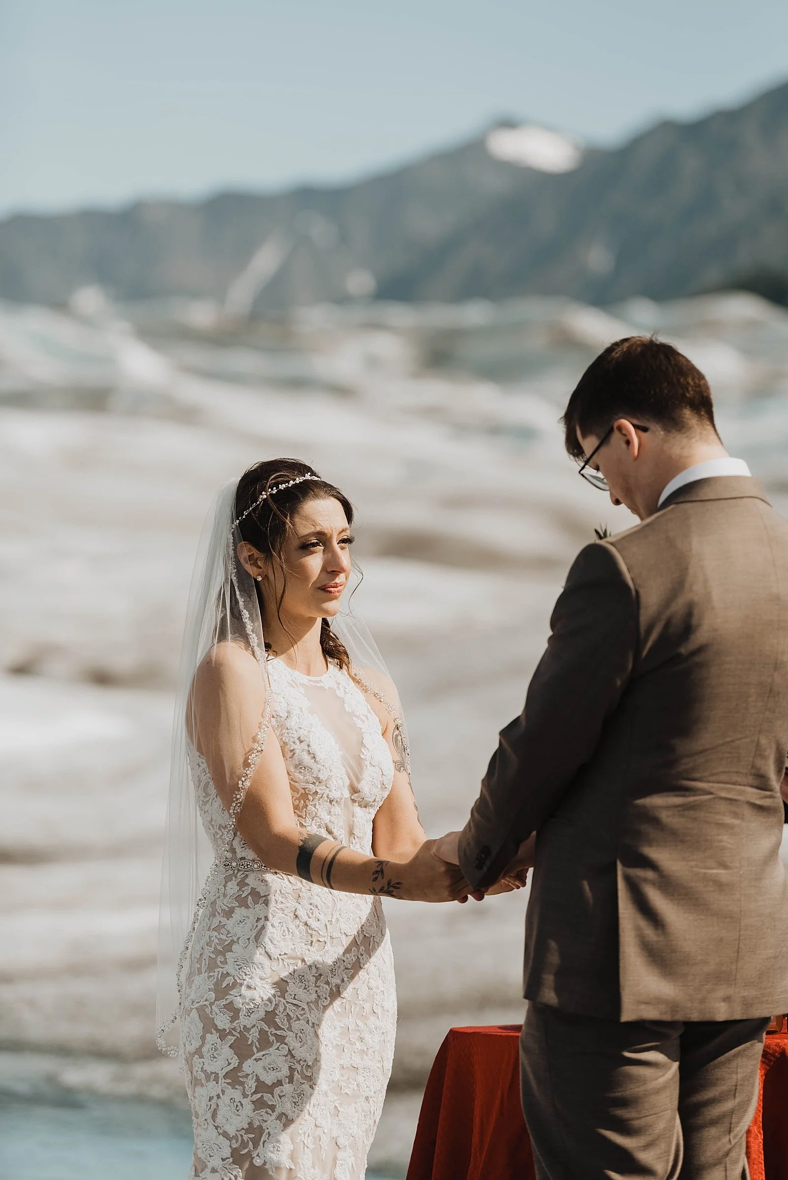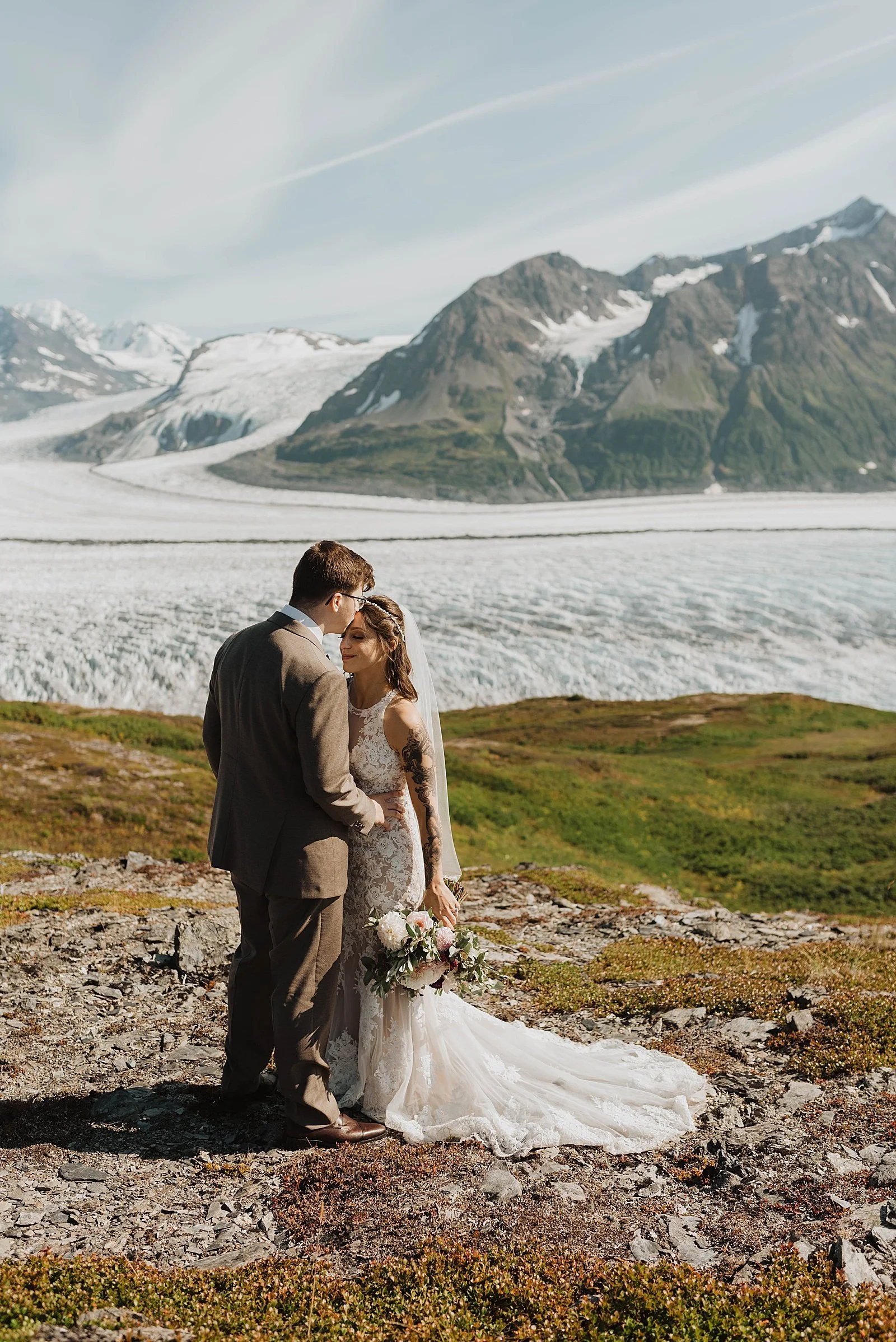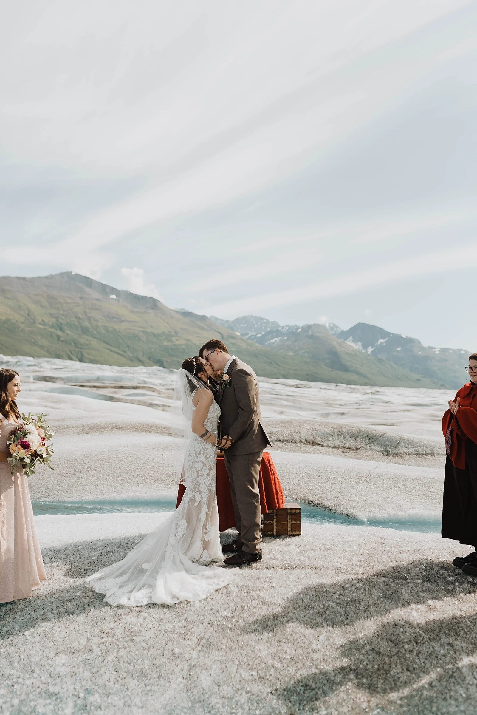And then? They took a helicopter out to Knik Glacier to say “I do” with their closest family. I LOVE my helicopter weddings. It’s just next level when it comes to Alaska’s scenery. Just wait until you see the backdrop for their couples portraits.