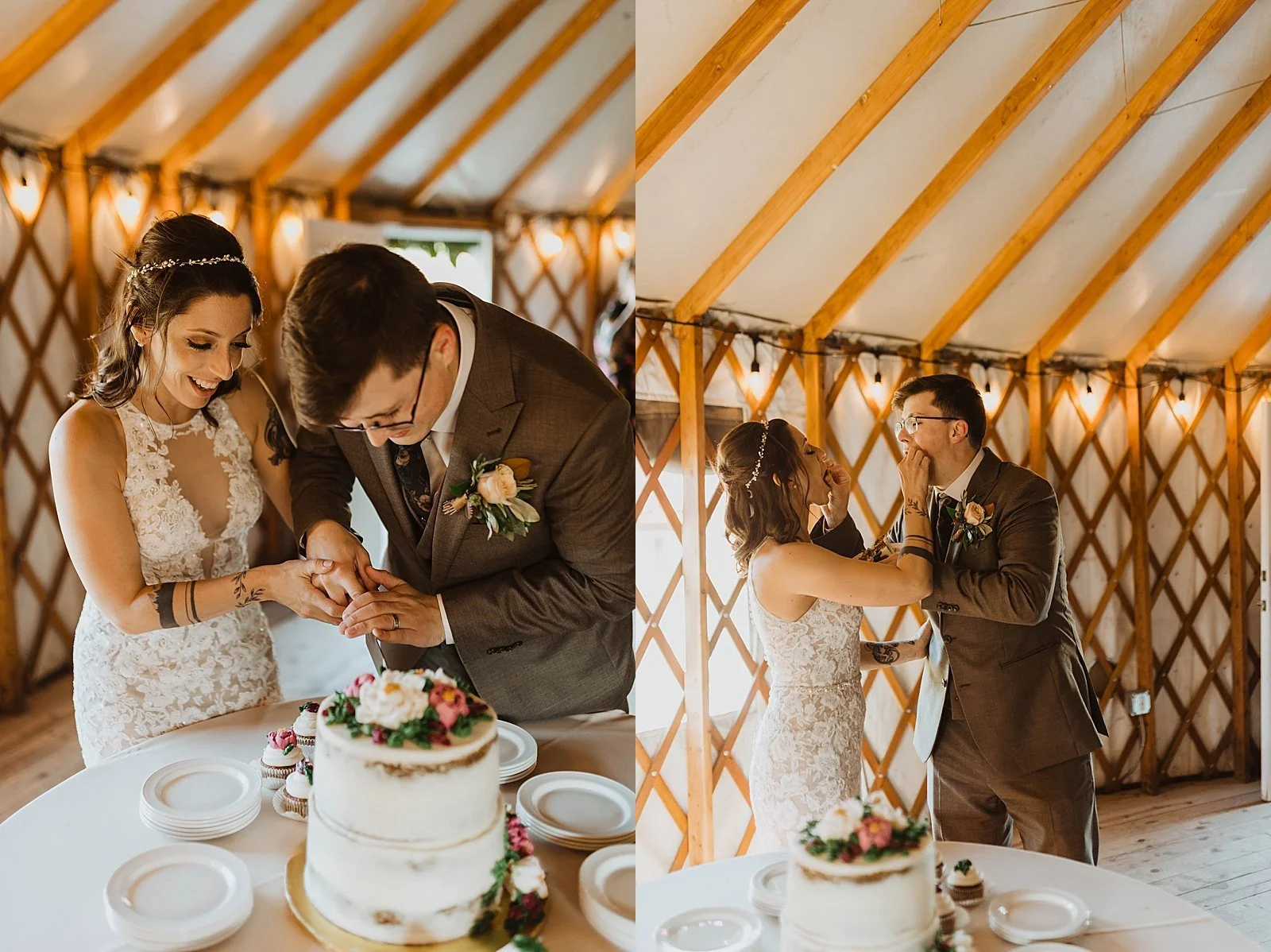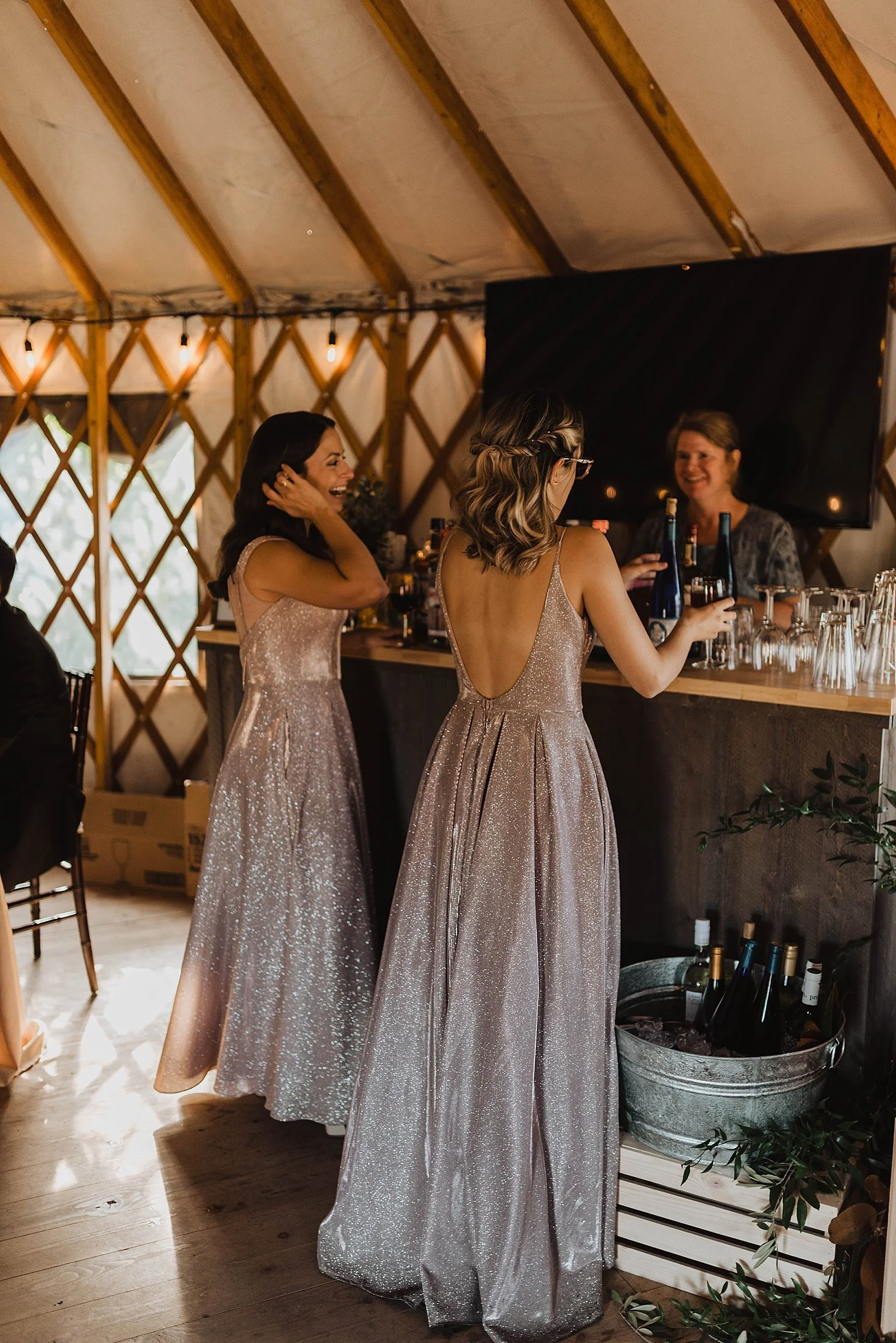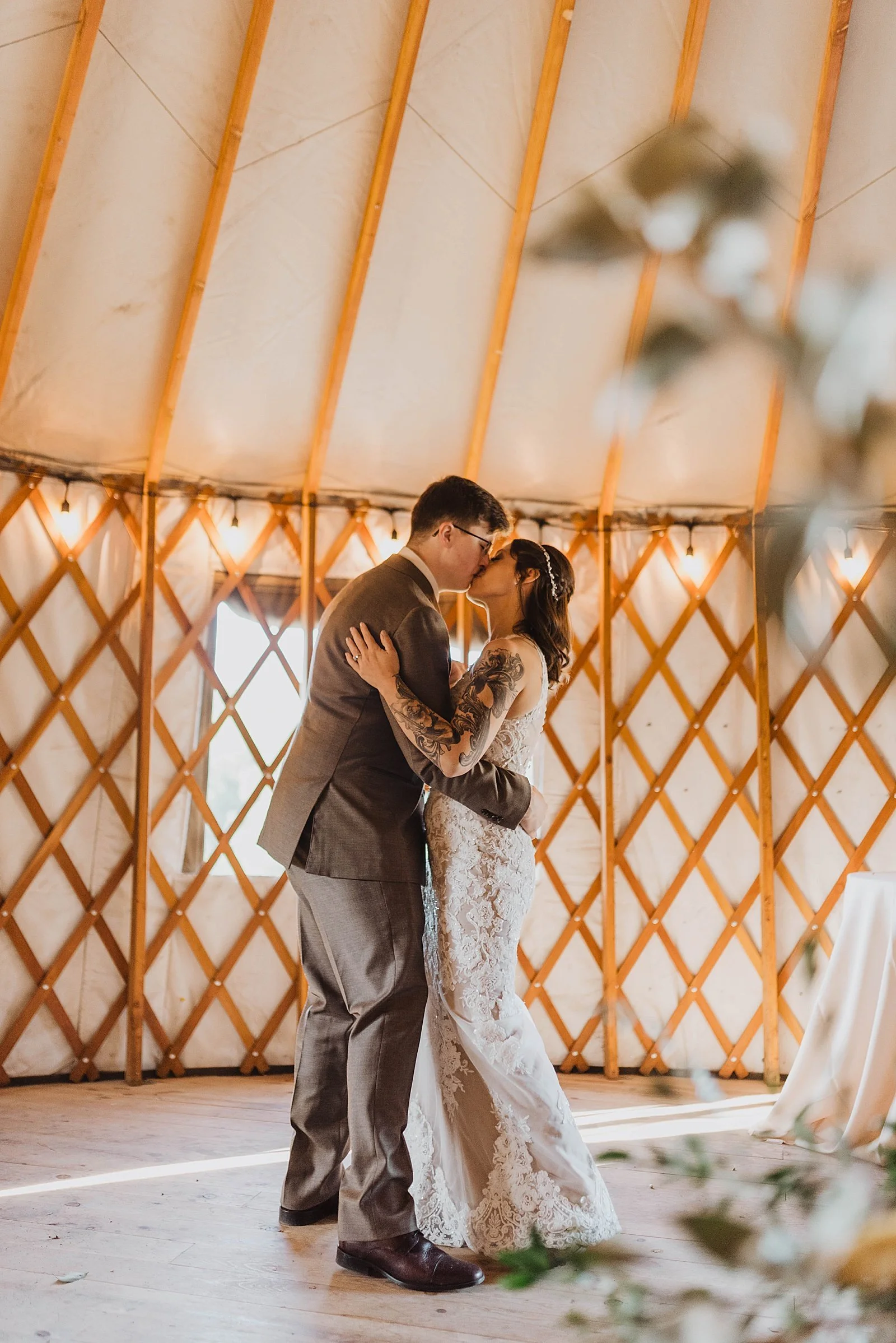 The fun day didn’t end there. We took a helicopter back where they had an intimate reception set up IN A YURT. It was beautifully decorated for their wedding, and their guests enjoyed a warm meal together.